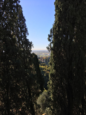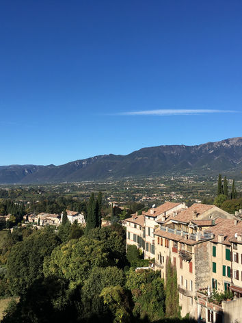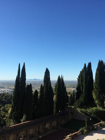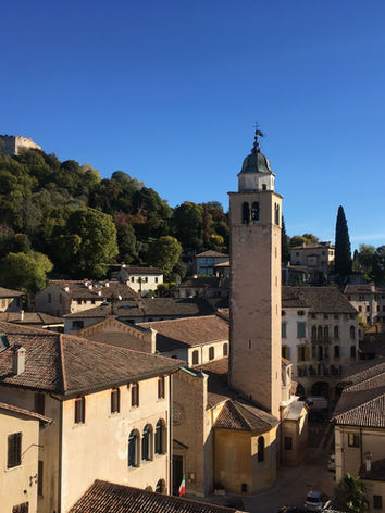 Back to ASOLO in 2017. My photographic survey of the Dolomite foot hills and mountains in 2015 confirmed to me that Bellini's distant landscape is specific to a low lying foothills landscape in dialogue with a fortressed hill town environment. My survey of Asolo in 2012 supports the argument that the viewpoint from the Rocca is significant for the way it described a similar landscape terrain described in the distance of the St Francis painting, but I was not completely satisfied that I had found the right view. If Bellini describes a variety of landscapes from low and distant view points, what of the horizon in his picture space and does his point of perspective help locate us in a particular landscape environment in dialogue with the townscape? Bellini shows us a bell tower in his fortress and we know there is a bell tower at Asolo, within Queen Caterina Connaro's castle which I had yet to explore. Please click on the painting sections below to explore what I found.