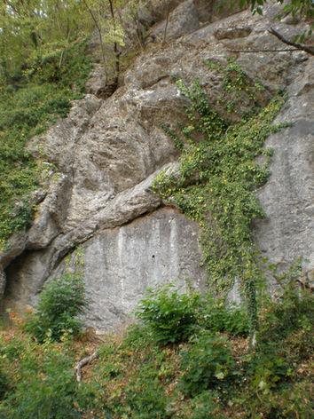 There is a strong visual similarity between the site, a huge double layered rock form that loops back into the hill side, and Bellini's description of a large rock face. The site can be reached through a gully from the square, but my walking took me first through cyclamens woods, and then thanks to a strangers advice, through a gap in the wall that surrounds the meadow from the other side of the hillside.